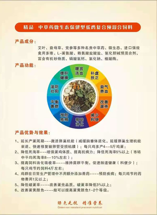中草藥微生態保健型蛋雞復合預混合飼料首頁 > 中草藥微生態保健型蛋雞復合預混合飼料 >